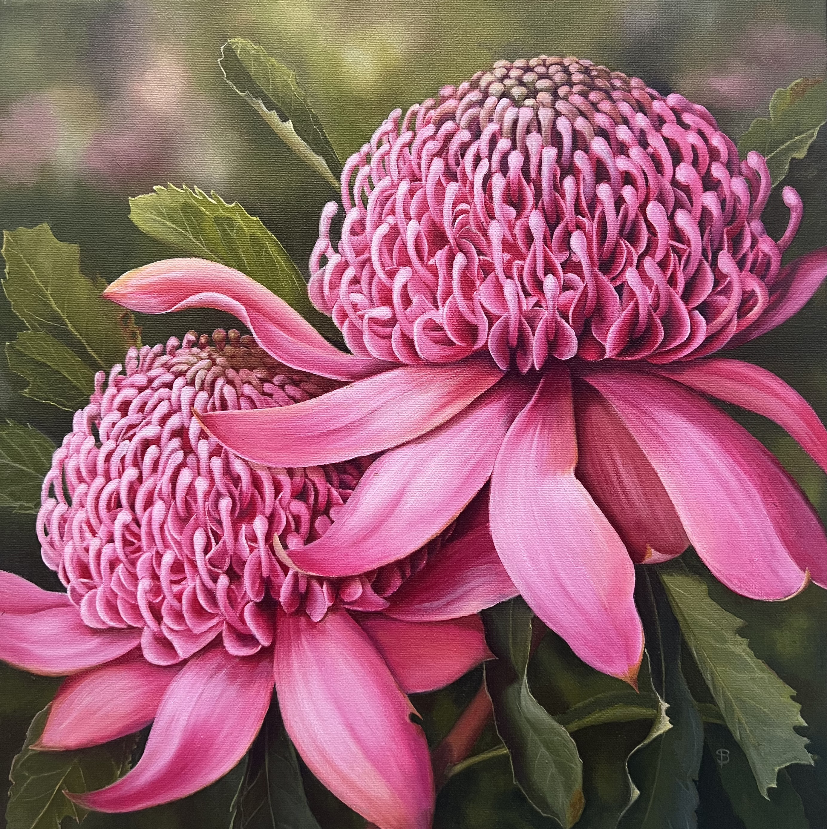Pink Waratahs oil on canvas 40 x 40 cm SOLD